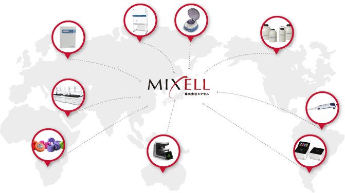 ミクセルは東京大学を始め、東京医科歯科大学や、理化学研究所、広島大学など、バイオテクノロジーを研究する大学や民間企業に、世界各国のメーカーから最新の研究機材や試薬、消耗品などを仕入れ研究目的にあった商品やサービスを提供しています。